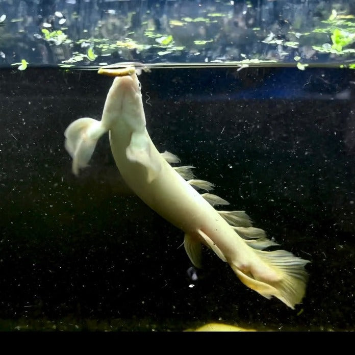 This exclusive fish displays beautifully white, long flowing fins and is incredibly rare. With its unique platinum coloring and impressive size, this fish is sure to make a statement in any aquarium. Only a limited quantity available.